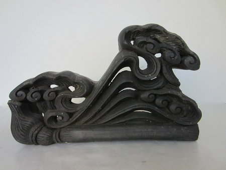 Amazing reticulated oni gawara (Japanese roof tile). The cloud pattern is unusual that it is reticulated and a brush is placed on the bottom of the tile. A mark is found on the bottom of the piece. Age: Edo Period c. 1850. Size: Length" 16.25" Wdith: 5.25" Height: 10.25