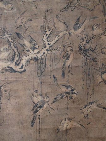 Antique Chinese scroll painting of 100 birds, swooping, fighting, sleeping, and eating insects in and around a gnarled tree and rocks. Painted in ink on paper, signed Gao Wen Liang and with two seals. 60 years cyclical dating. In our opinion this scroll dates from 18th century or older.