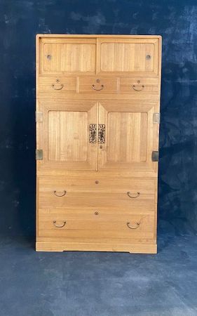 Kirinoki is a wood prized for Kimono storage. Its ability to absorb surrounding moisture keeps stored textiles dry during the humid months of Japan while dissipating moisture keeps them fresh during the dry months. Suginoki (also known as Japanese Cedar) is a wood used for the interior of the tansu due to its resistance to insects.