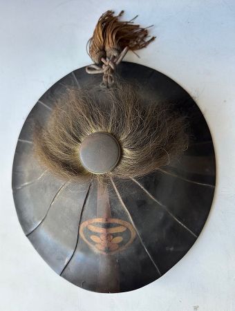 Antique Japanese Edo samurai jingasa (war hat). Original horehair status in a more striking appearance, signifying rank or affiliation.