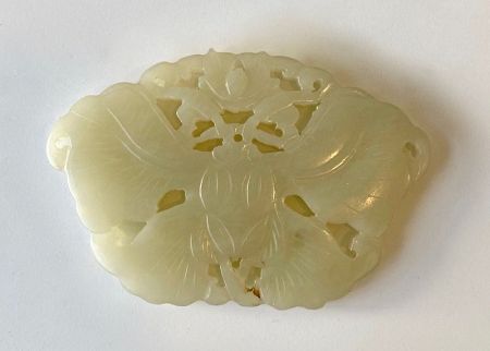 Chinese antique pale green jade carving of a butterfly. Originally an ornament to be sewn on to clothing. The butterfly in Chinese symbolism represents not only love and beauty but also the strengths born of metamorphosis: growth, renewal and change.