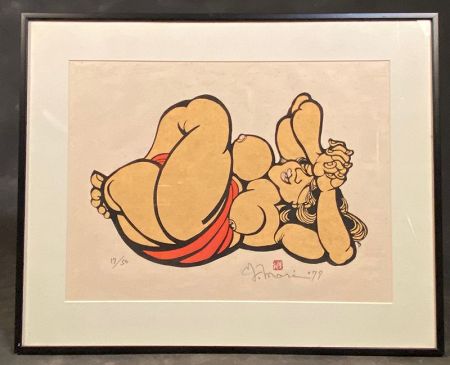 Yoshitoshi Mori Woodblock Print Entitled Afternoon Nap 1979