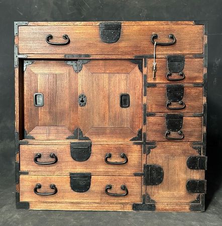 This example is well-preserved, complete, and showcases the balance of utility, strength, and refined simplicity that characterizes Meiji-era cabinetry. For collectors, it is both a cultural artifact and a functional decorative piece, bridging 19th-century Japanese merchant life with modern appreciation for craftsmanship.